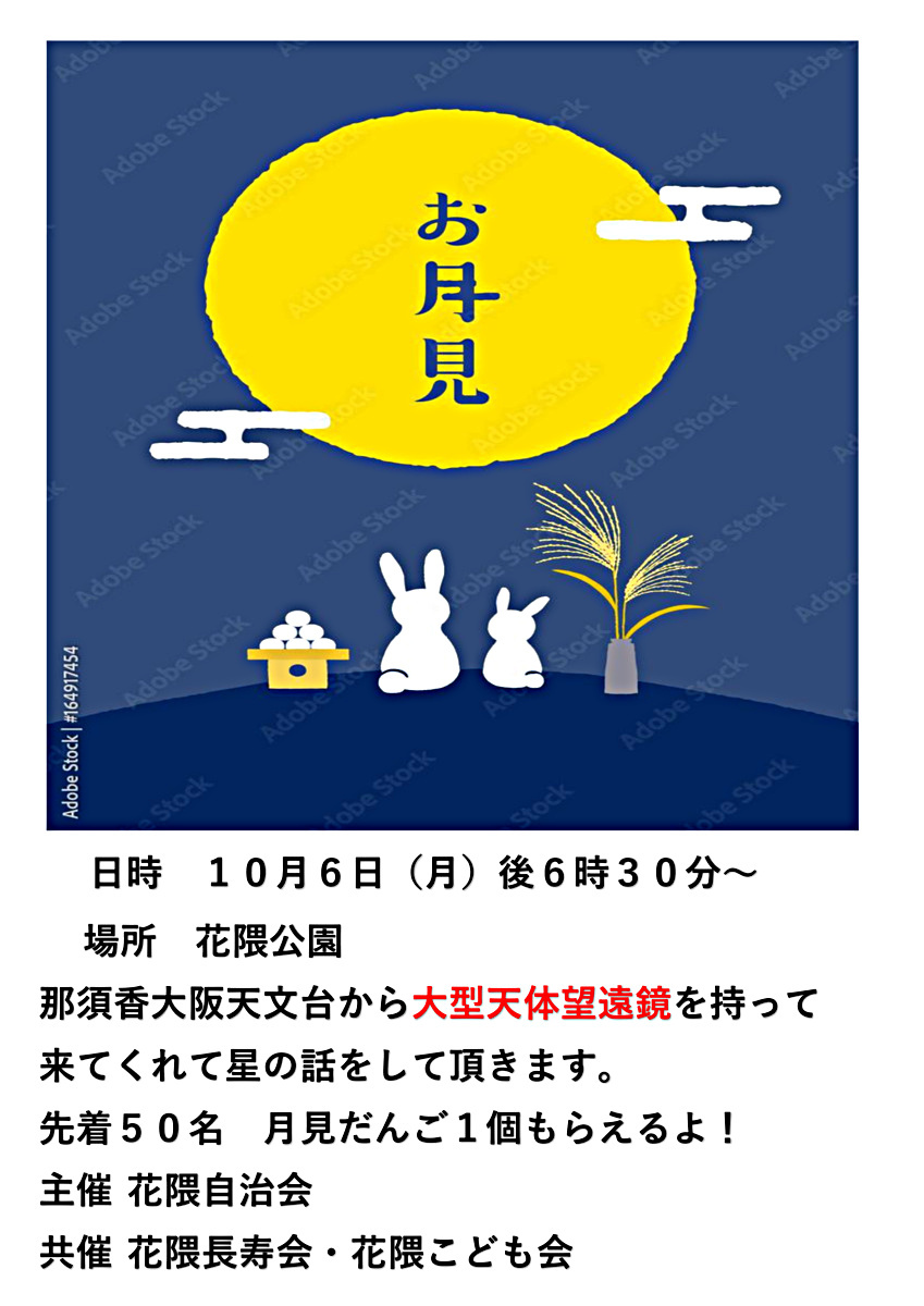 お天気がよければ天体望遠鏡でとてもきれいなお月見🎑ができます!ぜひみなさんで夜空を見上げましょう!