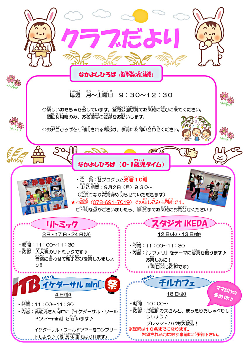 ご予約・お問い合わせは池田児童館まで♪TEL/078-691-7019