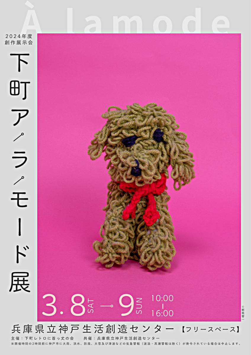 兵庫県立神戸生活創造センターでは手芸や折り紙など様々な創作活動を行うグループ7組と兵庫県五国や長田で創作活動を行う3組による作品展示、および創作活動者の交流の場として創作展示会「下町ア・ラ・モード」展を開催します♪