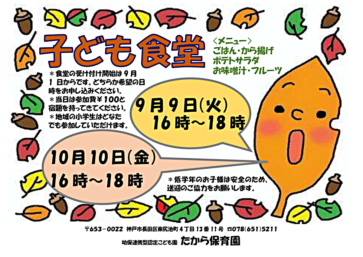 当日は、宿題タイム・ゲーム大会・たから保育園特製お食事なります。どうぞ、お楽しみに!