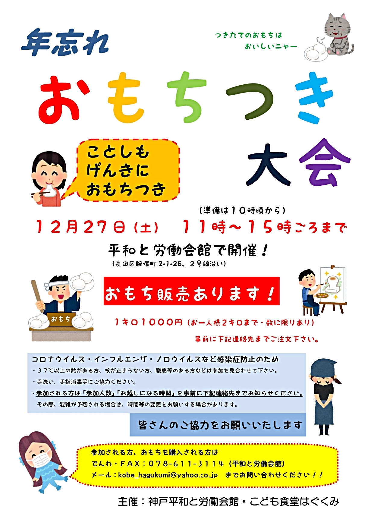 今年も、こども食堂はぐくみの年末恒例特別企画「年忘れ おもちつき大会」を開催します。