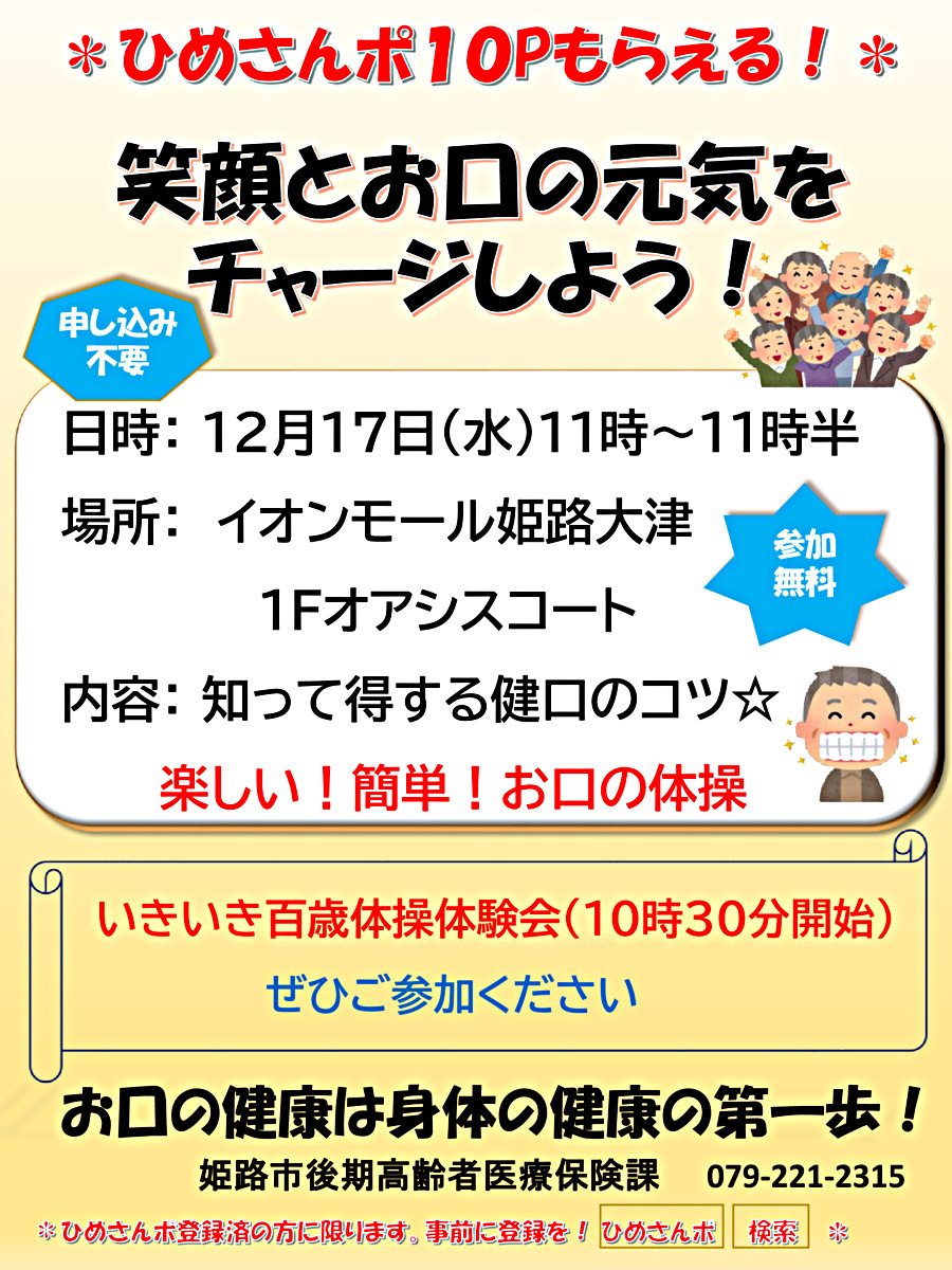 知って得する健口のコツが聞けるほか、楽しく簡単にできるお口の体操をやってみませんか☺どなたでも参加可能です。