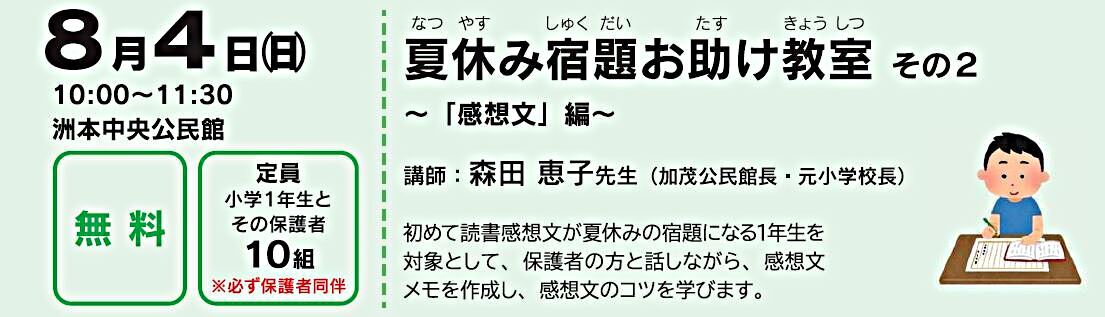 小学1年生とその保護者を対象に、話しながら感想文メモを作成して、感想文のコツを学びます。