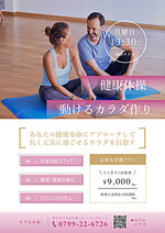 「健康体操」教室では、いつまでも健康で元気にすごせるカラダ作りを行います。