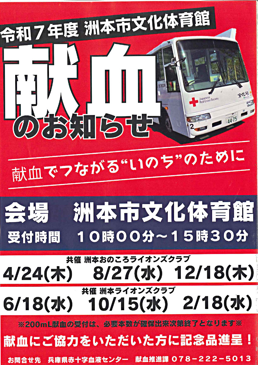 078-222-5013(兵庫県赤十字血液センター 献血推進課)