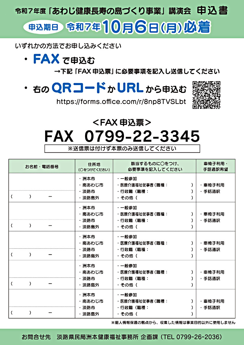※申込みは10月6日(月)まで電話、FAX、専用フォームからお申し込みください。