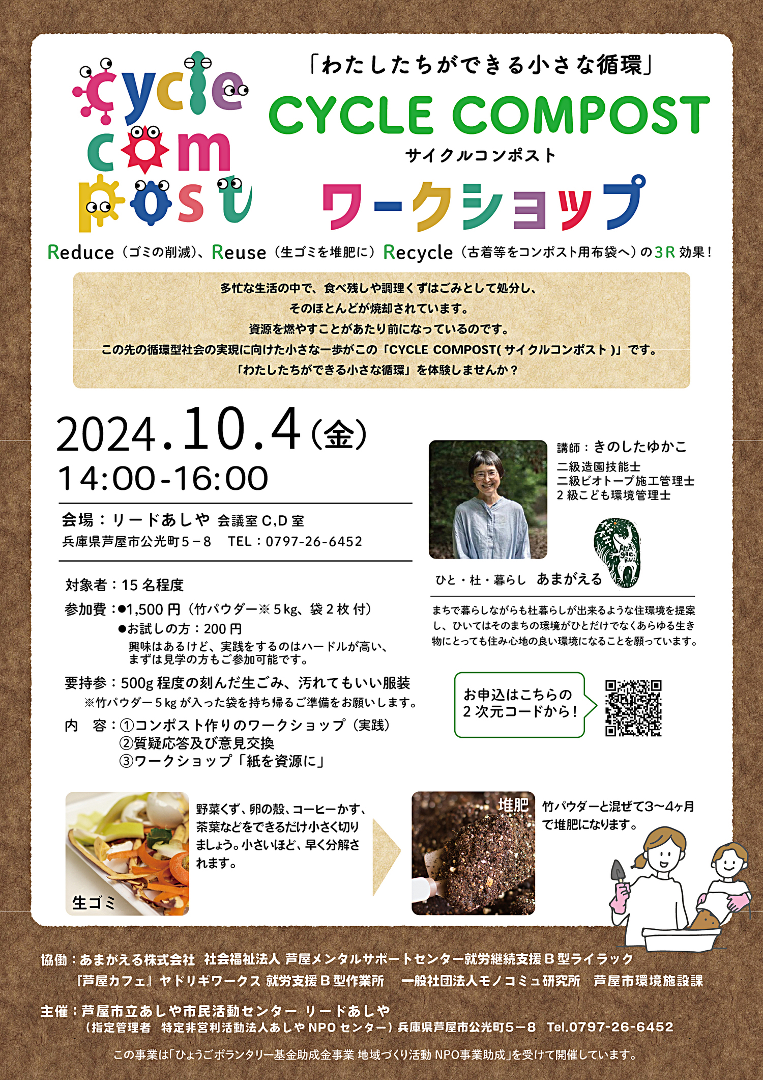 要持参: 500g程度の刻んだ生ごみ、汚れてもいい服装