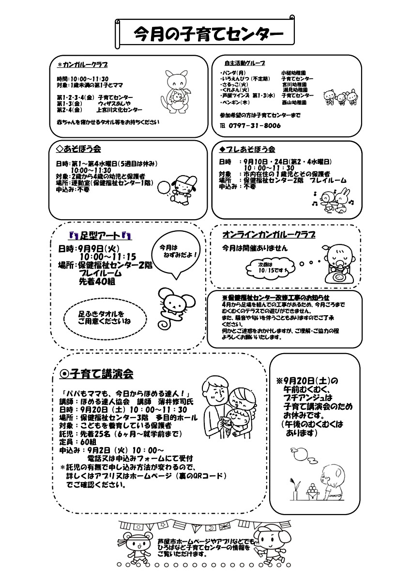 なお、電話や来所による相談は子育てセンターで随時受け付けていますのでご利用ください。