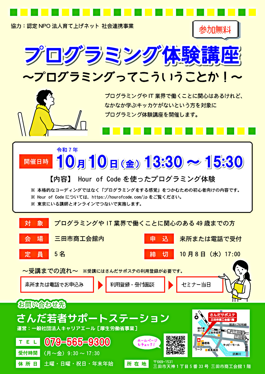 『プログラミング体験講座~プログラミングってこういうことか!~』を開催します!