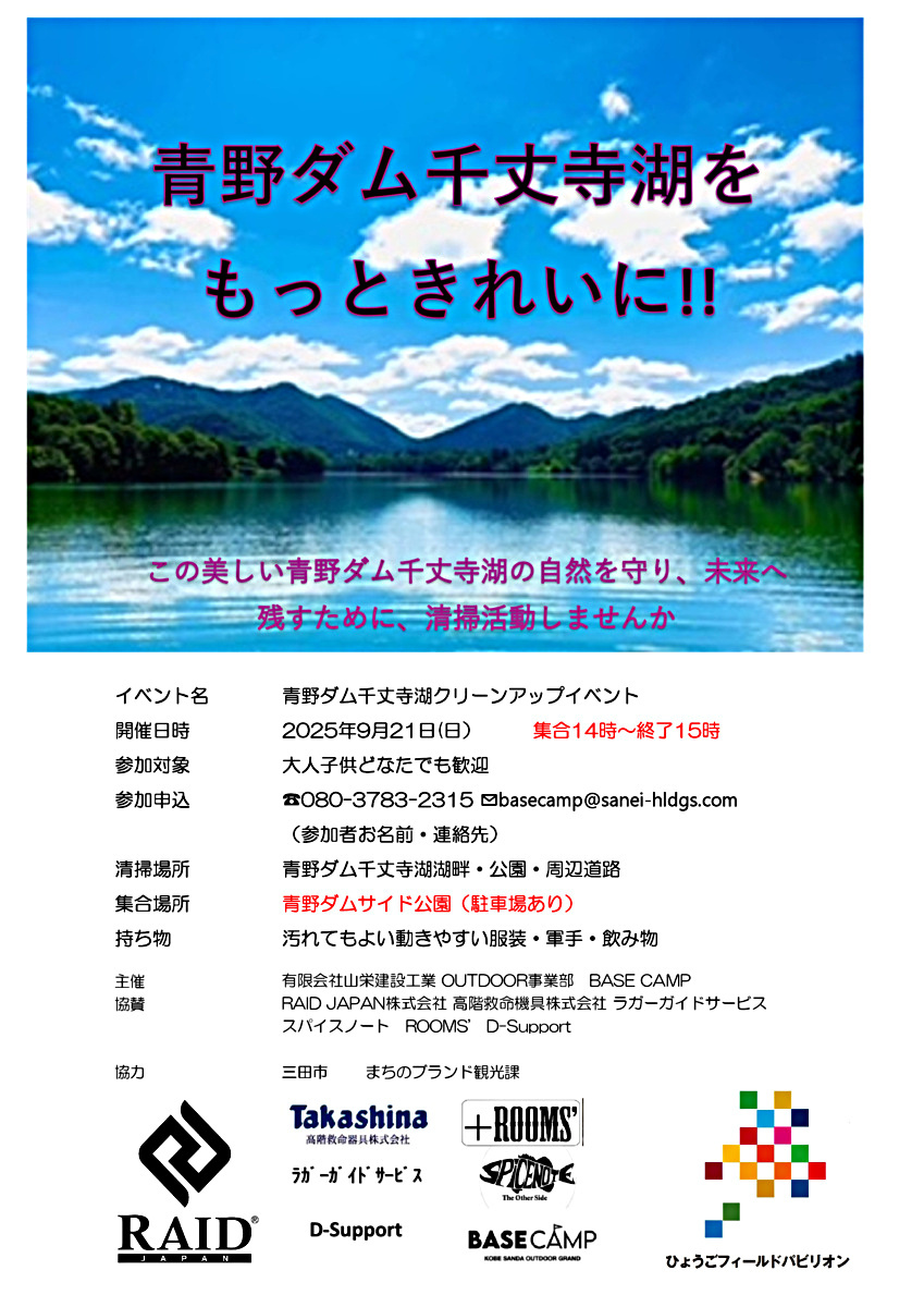 千丈寺湖を一緒にきれいにしよう! BASE CAMP GRAND STAGE & 青野ダム千丈寺湖クリーンアップイベント