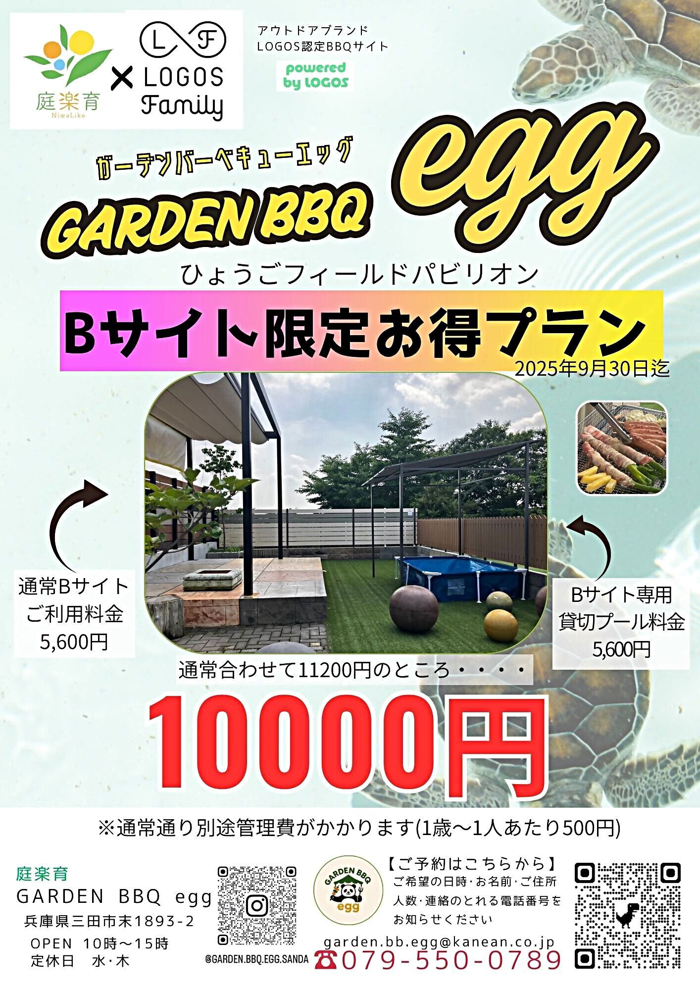 庭楽育 GARDEN BBQ egg ひょうごフィールドパビリオン限定バーベキューサイトお得プラン!