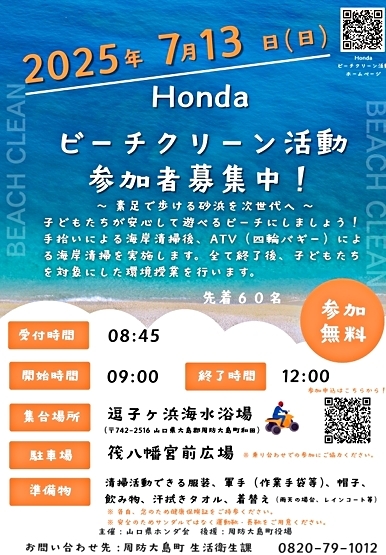 注意事項(3) 本田技研工業株式会社及び周防大島町の広報用で写真撮影を行います。撮影不可の方は当日受付でお申し出頂きますようお願いいたします。