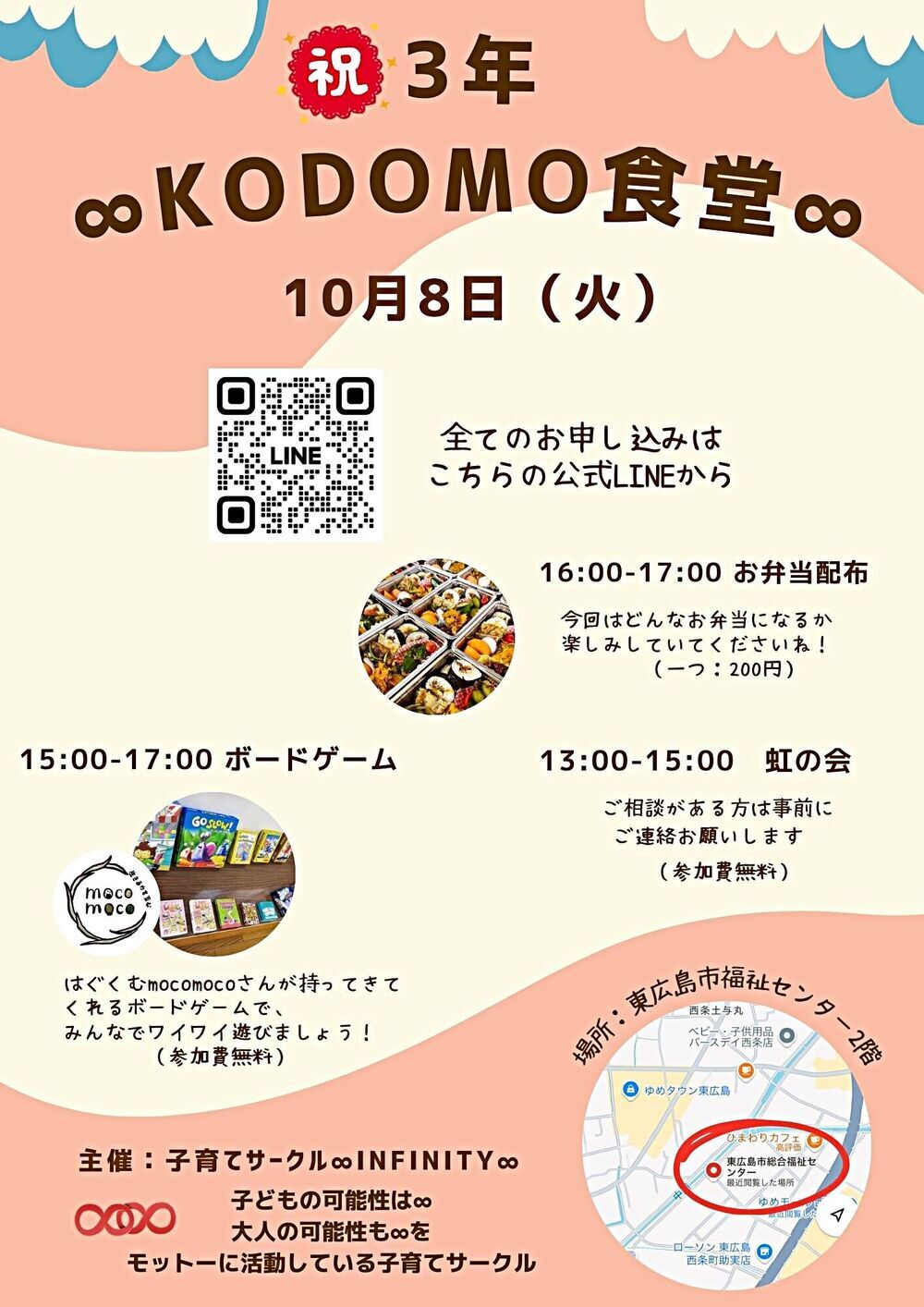 〇毎日午前11時から午後5時まで食事の提供をしています。(行事等で休む場合があります。)