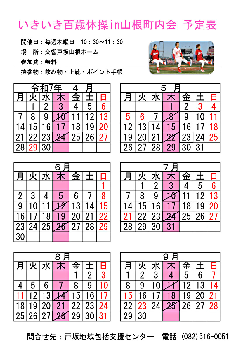 持参物:飲み物、上靴、いきいきポイント手帳