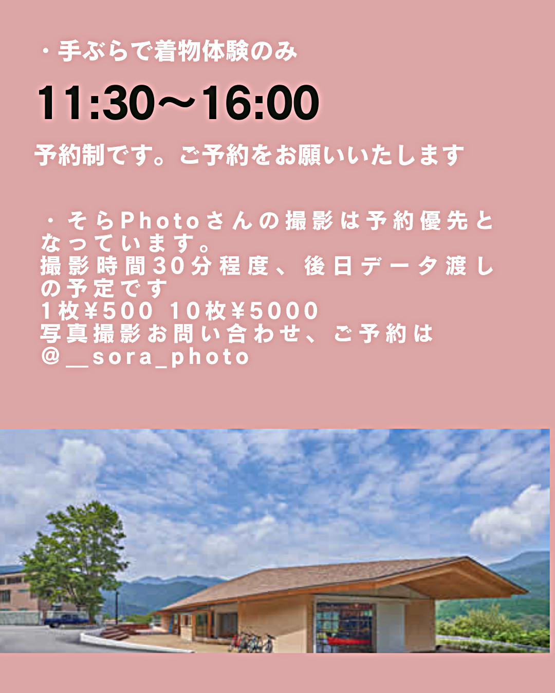 着物体験のみ予約制11:30〜