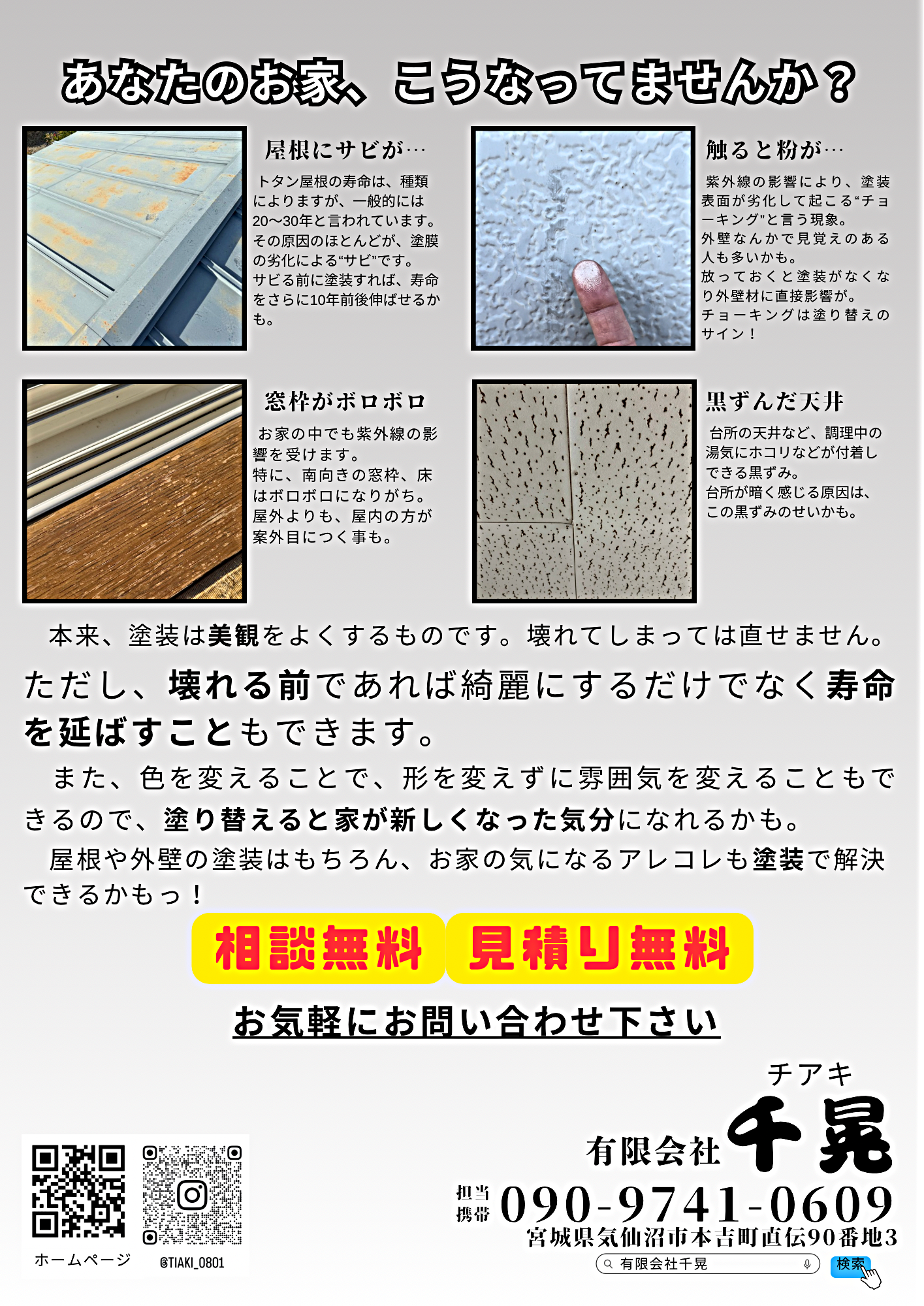 お家の屋根や外壁、その他お家にまつわる塗装の事なら何でもご相談ください。