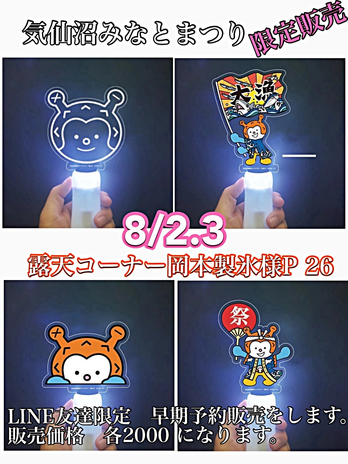数量限定のため必ず欲しい方の為の予約です。当日みなとまつりに来れない方の為に発送もいたしますが、別途送料がかかります、発送は3日以降になります。
