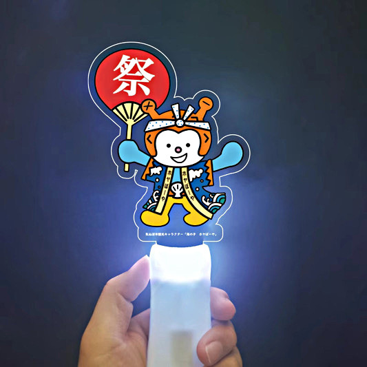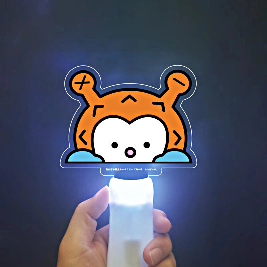 気仙沼みなとまつりにて販売する、ホヤぼーやを型どったピカピカ光るグッズです。