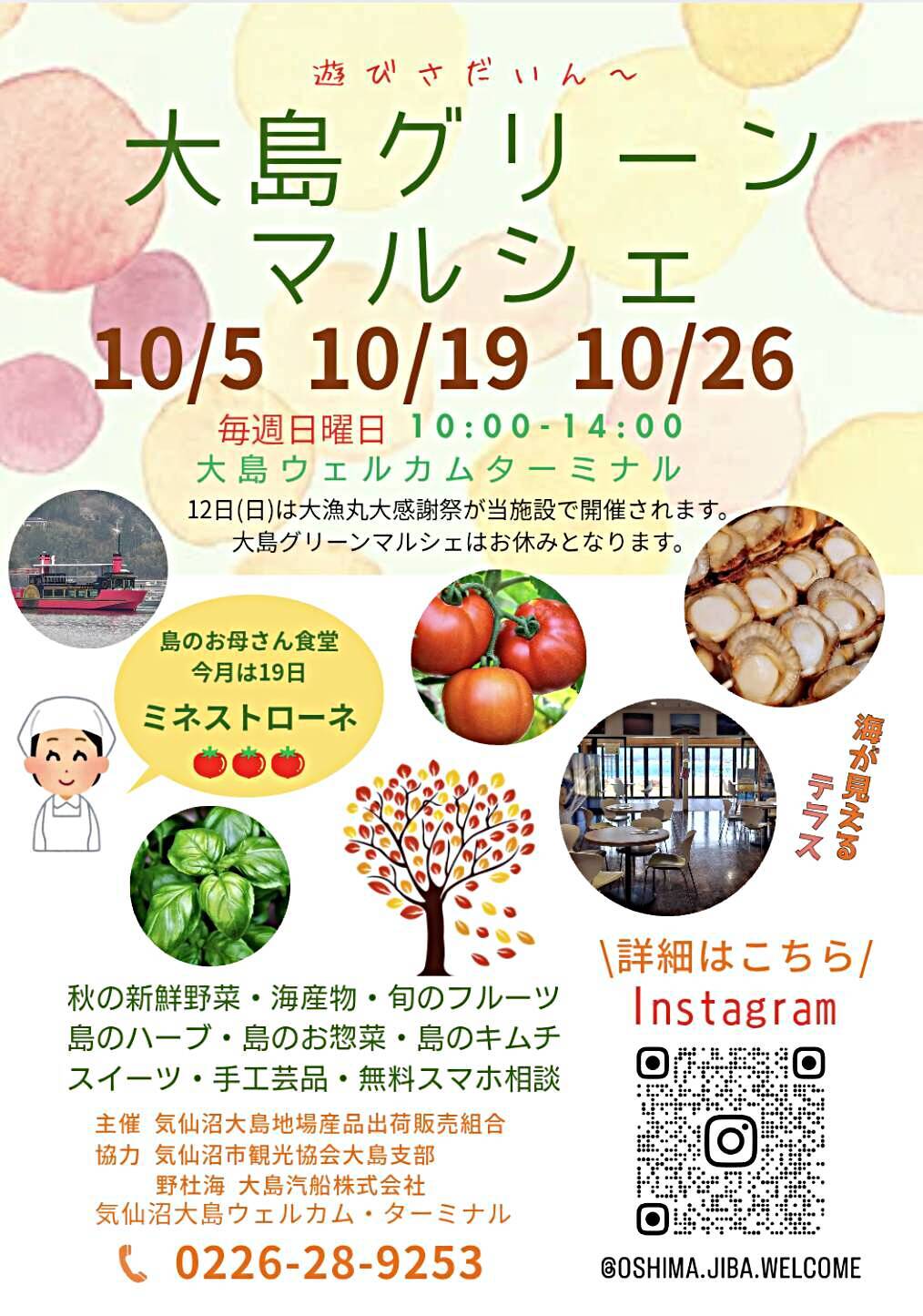 気仙沼大島ウェルカム・ターミナルにて「大島グリーンマルシェ」が10月の日曜に開催されます!