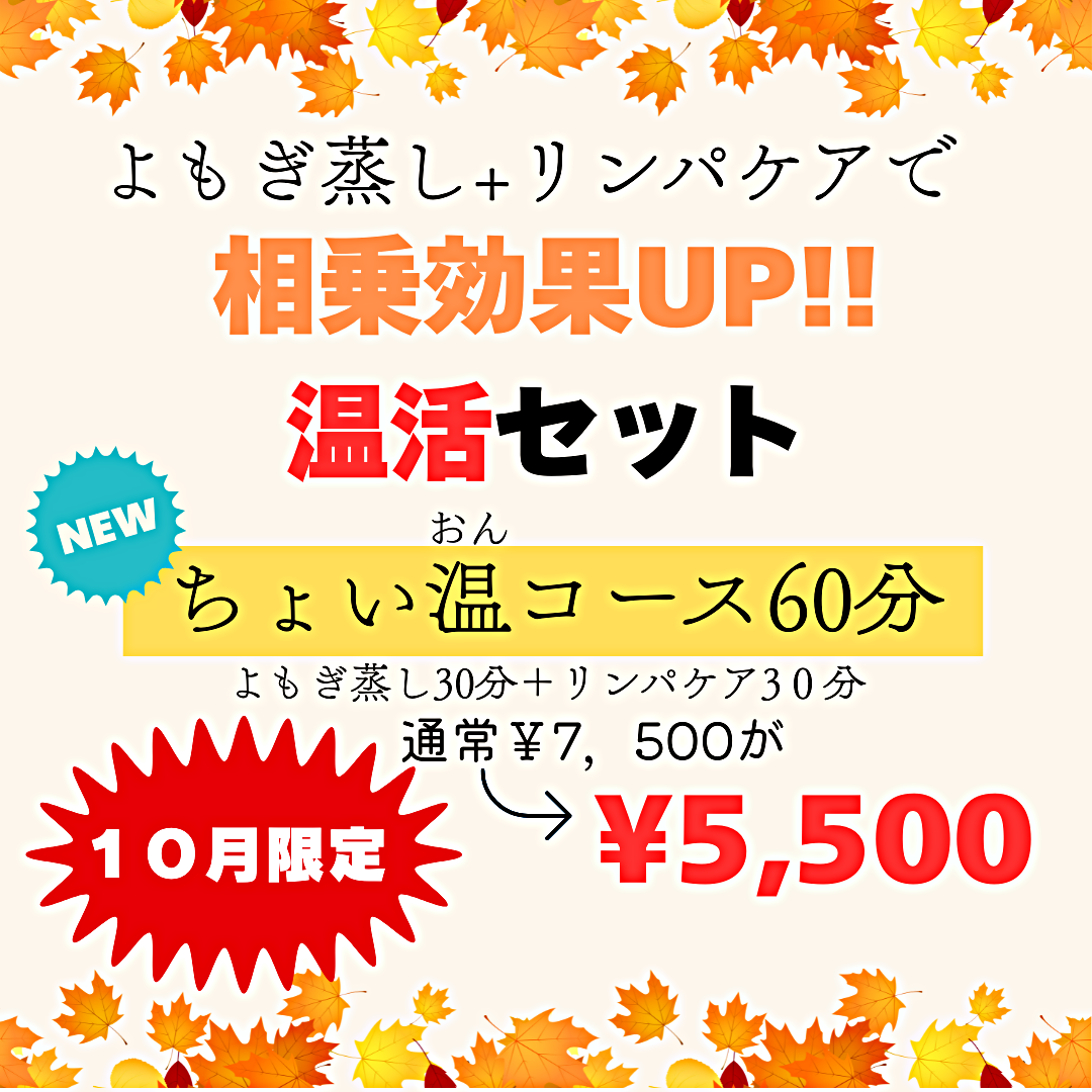 🔸 温巡コース150分(よもぎ蒸し30分+リンパ120分)¥16,000