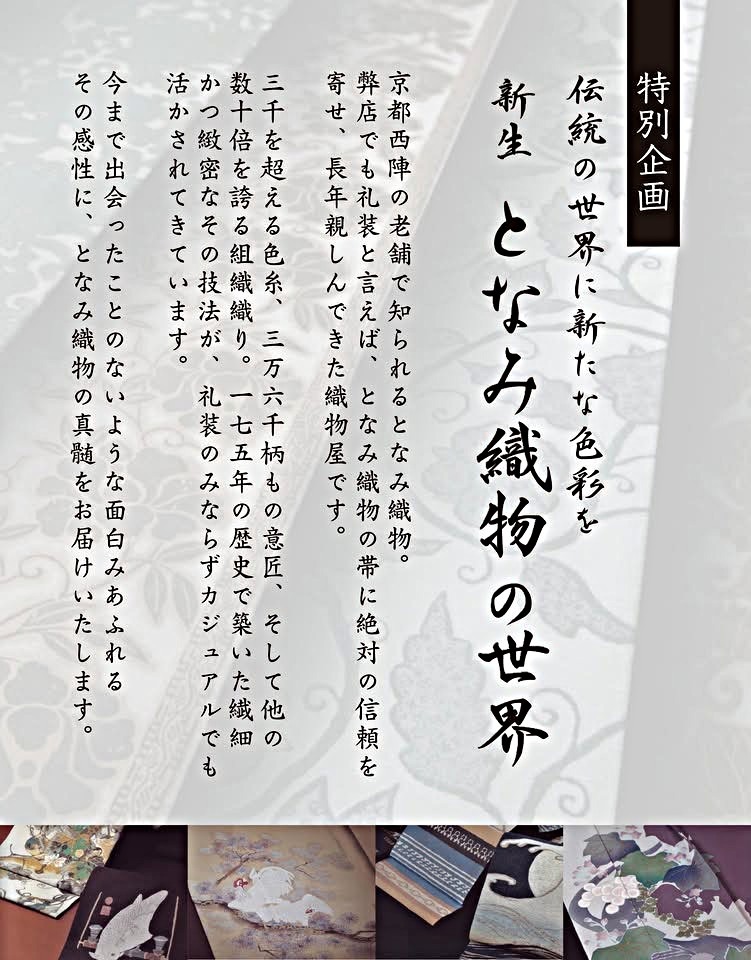 創業祭今年のメインは帯の最高峰に君臨する西陣織。老舗メーカーである『となみ織物』さんを特集いたします。