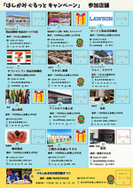 観光に!食事に!お買い物に!「はしかみ」の魅力がたくさん詰まった場所をたどってシールを集めると、特産品を抽選でゲットできるチャンス。さらに、5枚集めて応募いただいた方全員に小さな星の塩のラベルをプリントした「オリジナルランチバック」をプレゼントさあ、あなたの新たな「お気に入り」を見つけに出かけよう!