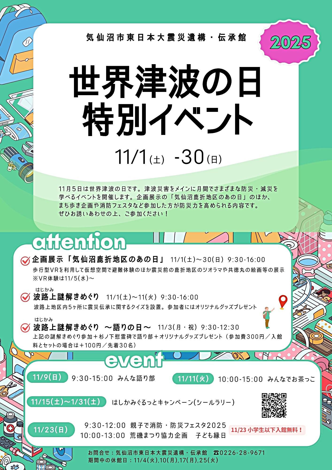 11月5日は世界津波の日です。津波災害をメインに月間でさまざまな防災・減災を学べるイベントを開催します。