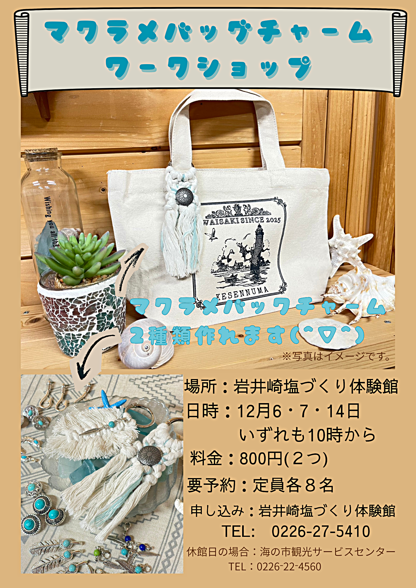 キャンバス生地のバッグによく似合うバッグチャームを作るワークショップです。