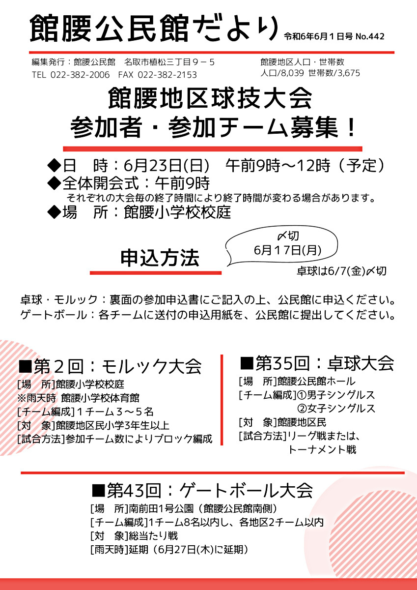 ★毎月1日・15日・末日にその月の公民館だよりを掲載しています。