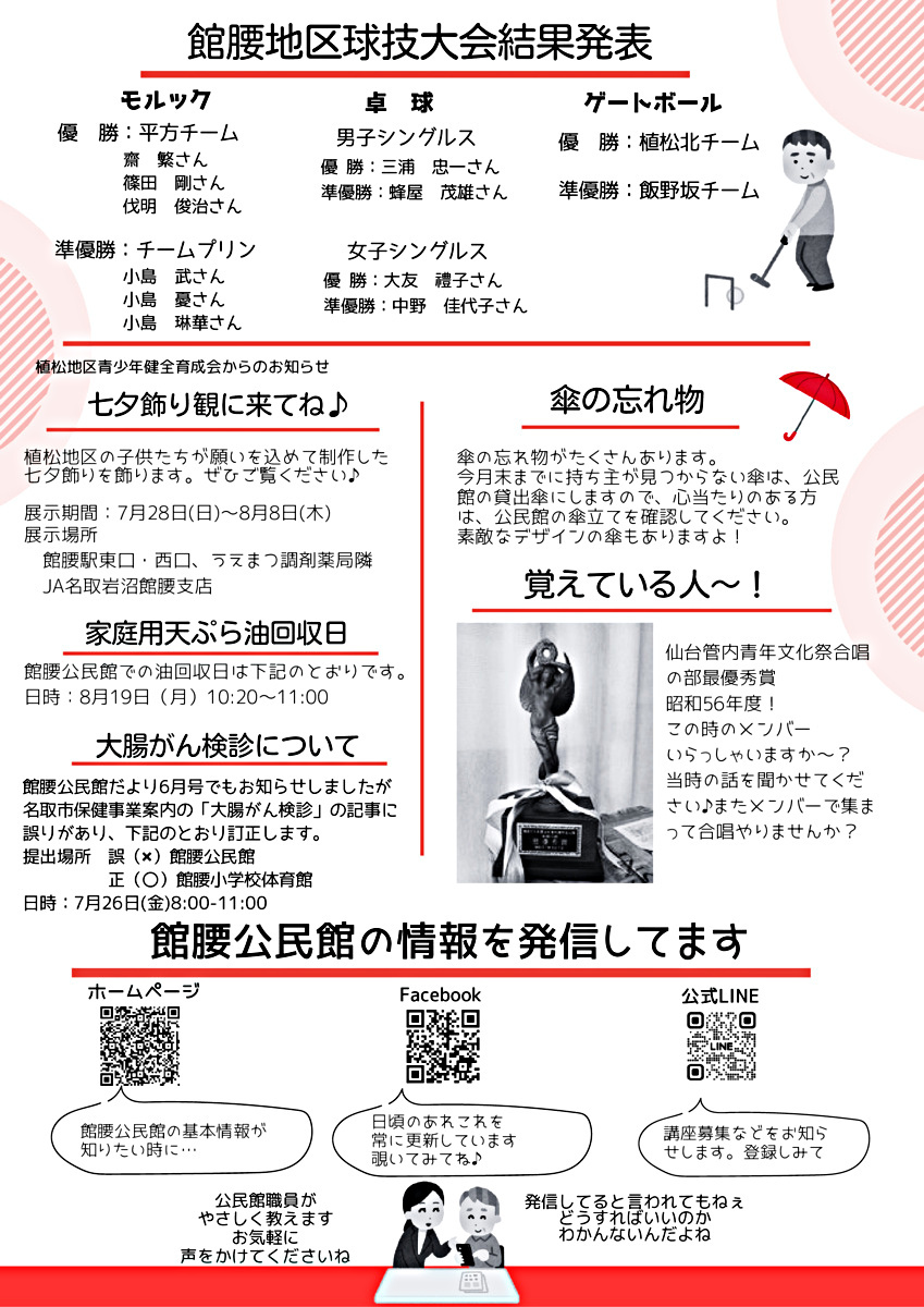 ★毎月1日・15日・末日にその月の公民館だよりを掲載しています。