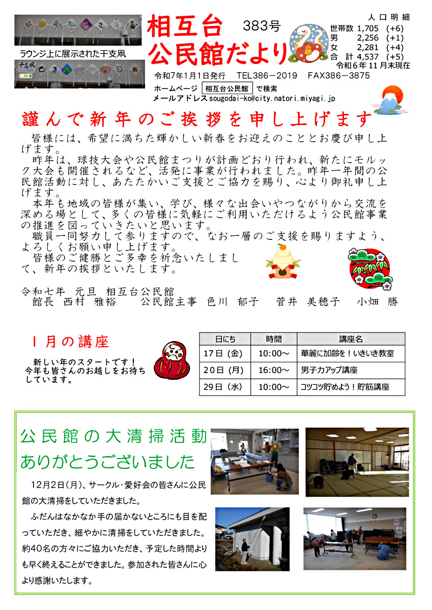 ★毎月1日・15日・末日にその月の公民館だよりを掲載しています。