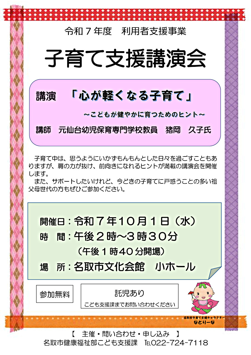 肩の力が抜け、子育てに前向きになれるヒントが満載です。子育て中や子育てをサポートしたい祖父母世代の方々、ぜひご参加ください。