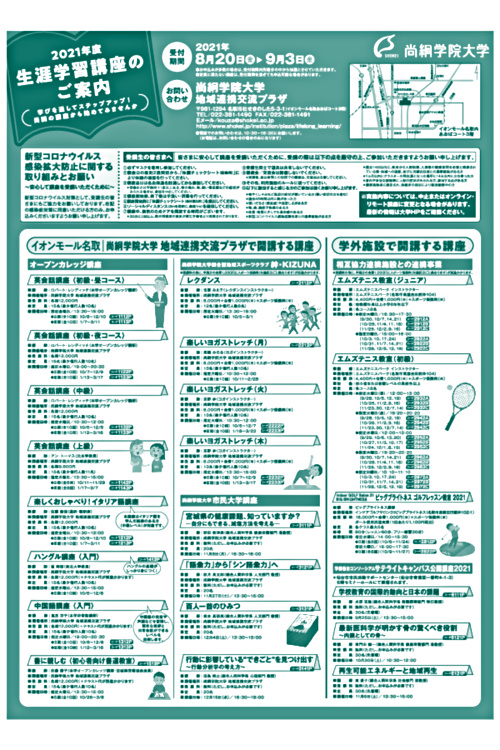 2021年度尚絅学院大学生涯学習講座(Ⅱ・Ⅲ期)ご案内