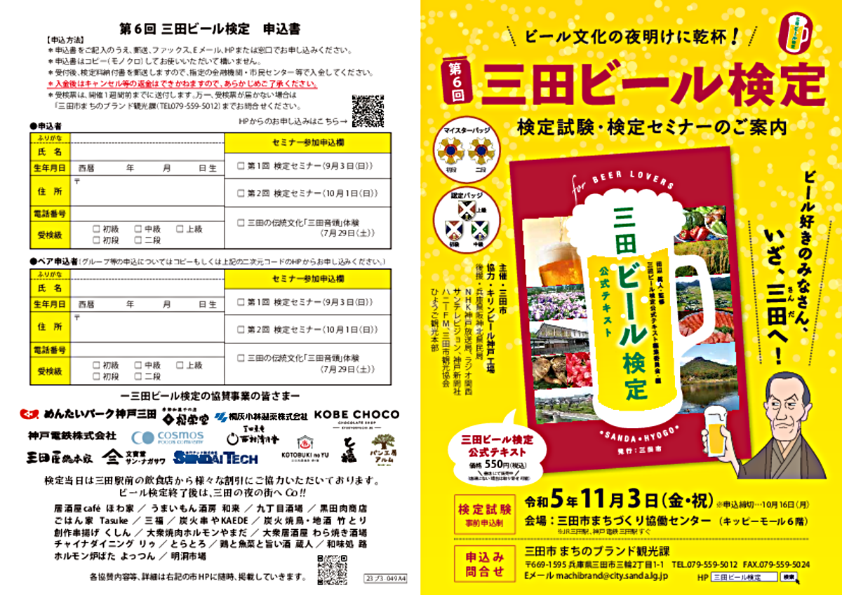 「三田ビール検定」は、ビールの歴史や醸造学を学び、三田の歴史・文化・風土、そして豊かな食に親しんでいただくユニークな検定です。