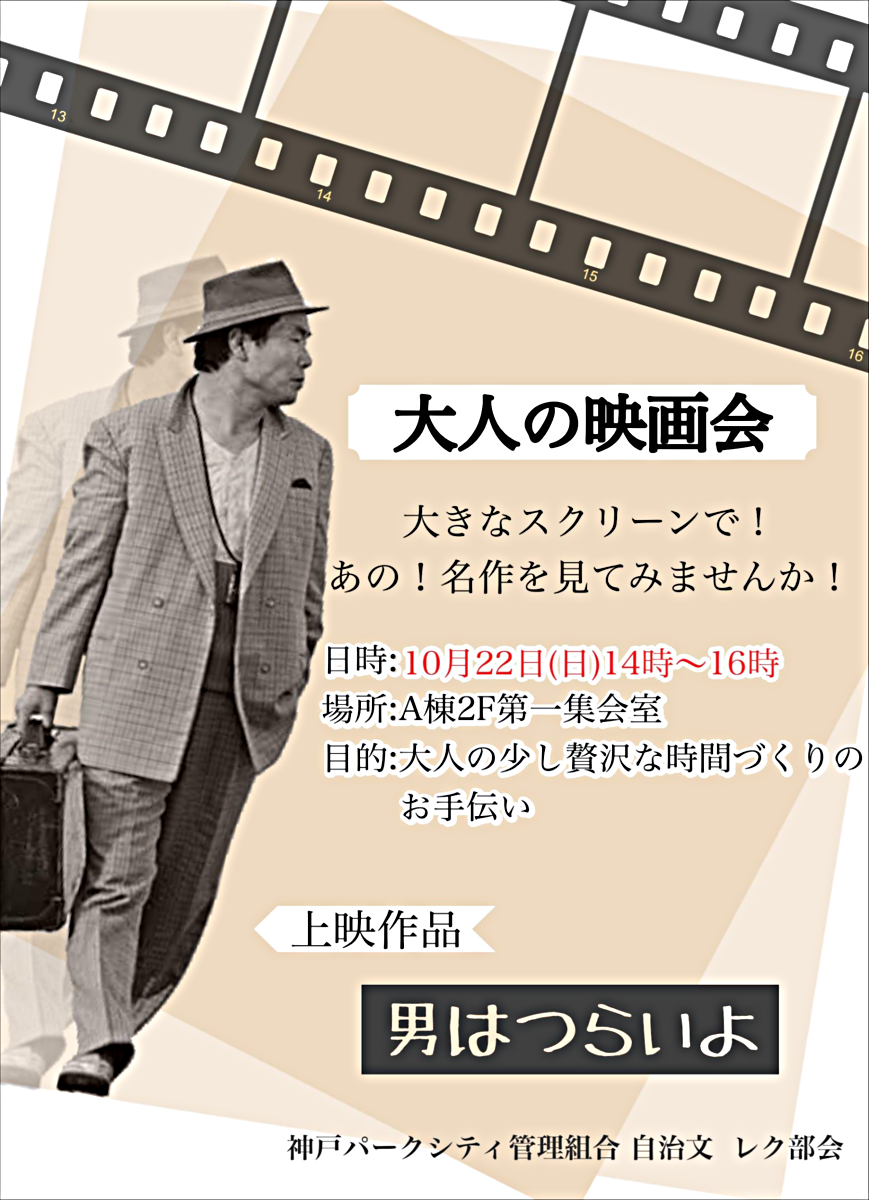 神戸パークシティ管理組合 自治文 レク部会が主催しております、大人の映画会です。
