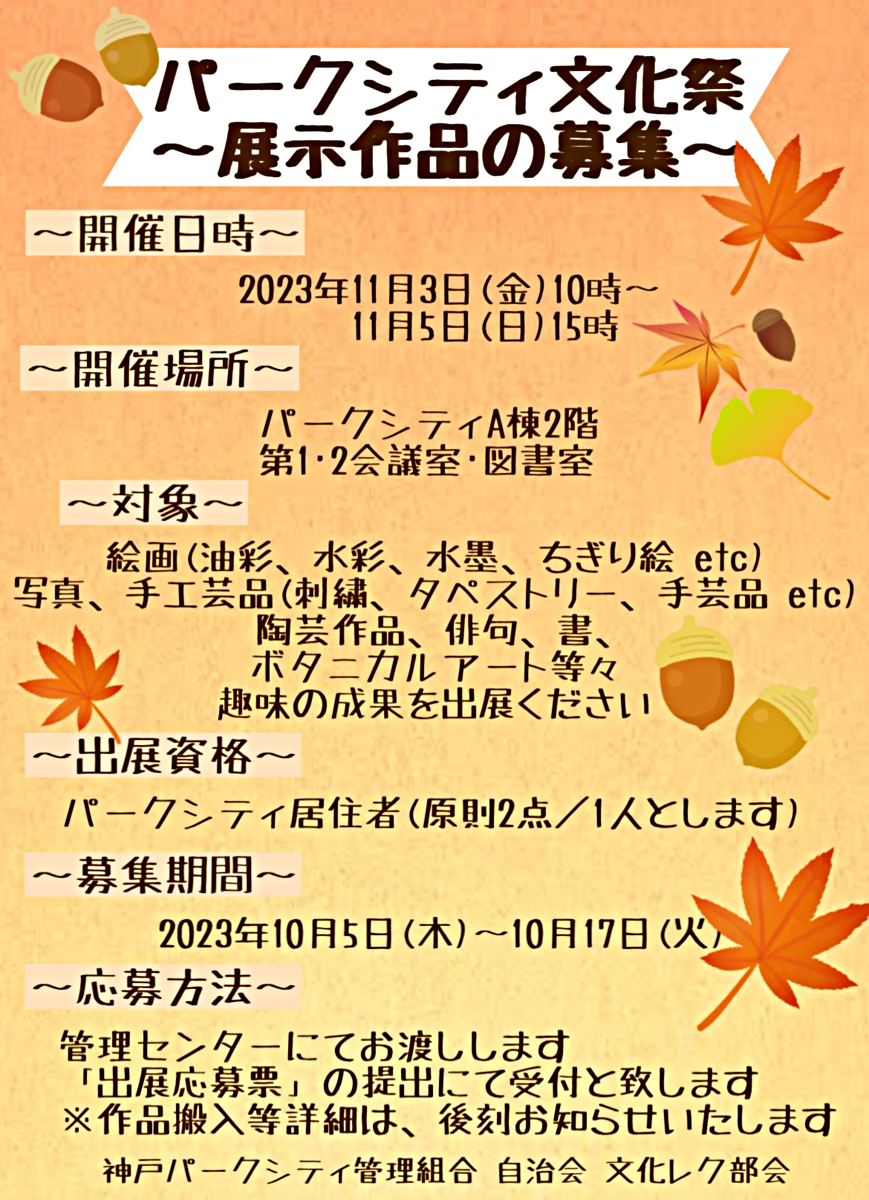 【限定】パークシティー居住者の方文化祭に出展をされてみませんか?