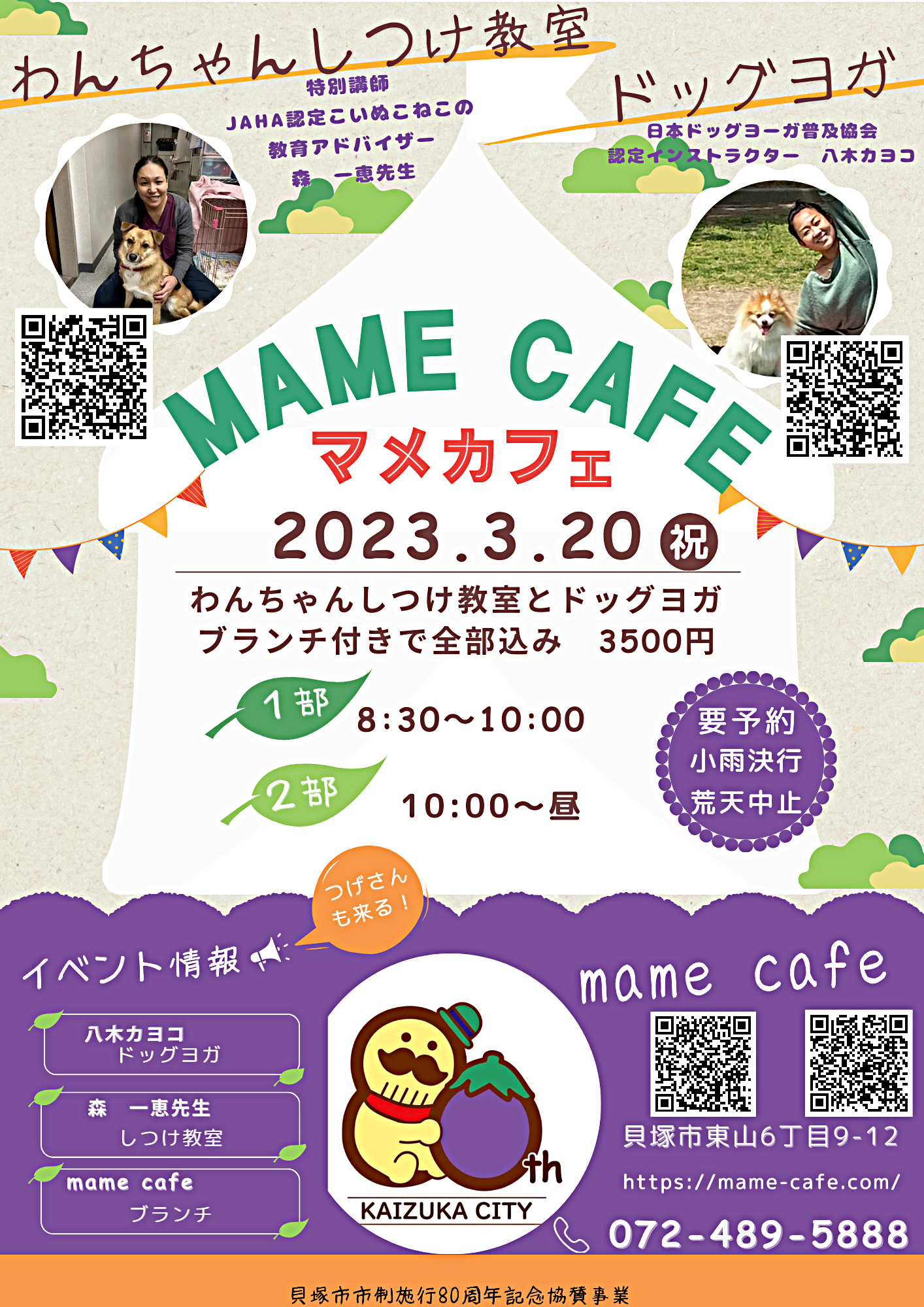 ワンちゃんも一緒に参加できるドッグヨガを楽しみつつ、ワンちゃんのしつけのワンポイントを楽しく学びませんか?