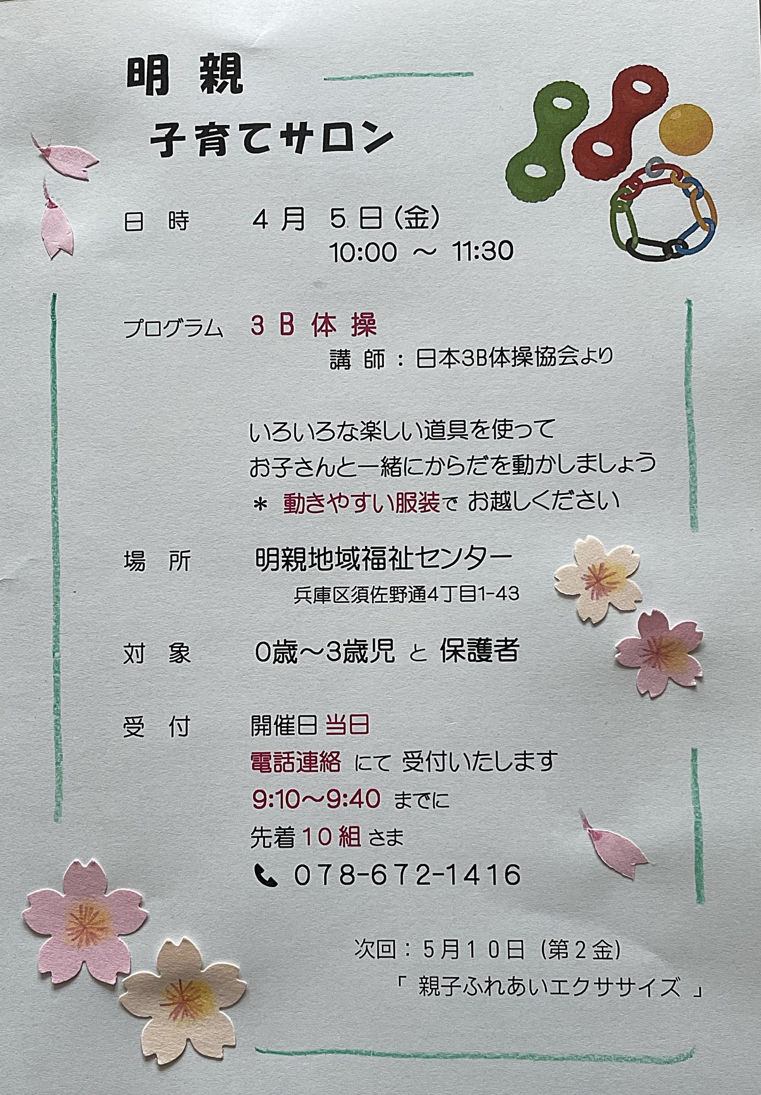 明親地域福祉センターで4月5日(金)10時~