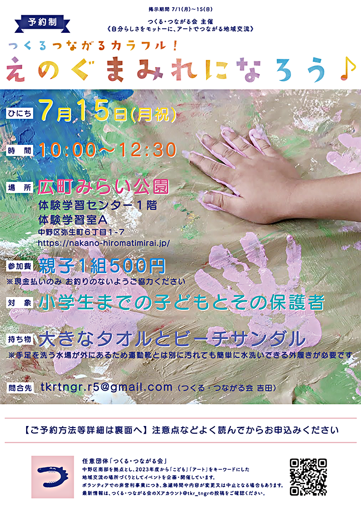 お問い合わせ等は「つくる・つながる会」までメールでお願い致します。tkrtngr.r5@gmail.com