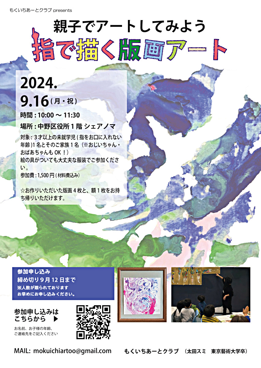 お子様とご家族1名様2人で一緒にとってもたのしい版画制作してみませんか