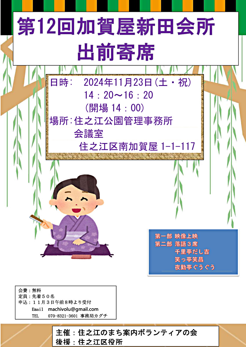 申込 11月3日午前8時より先着50名email machivolu@gmail.comtel 070-8321-3601 事務局カグチ