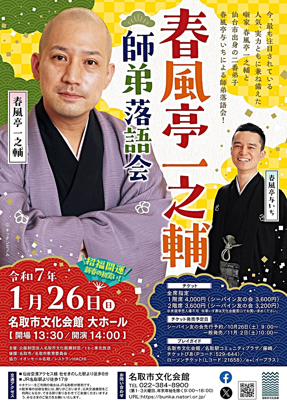 今、最も注目されている人気、実力ともに兼ね備えた噺家 春風亭一之輔と、仙台出身の二番弟子 春風亭与いちによる師弟落語会!