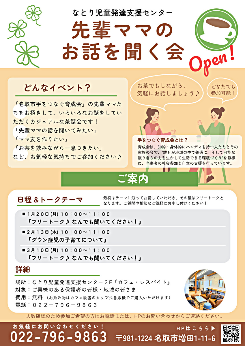 「なとり児童発達支援センター」で実施している地域向けイベントのご案内です。ご興味のある保護者様はお気軽にご参加ください!