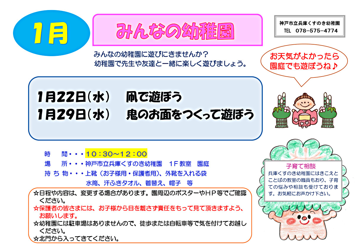 未就園の親子を対象に幼稚園の先生と一緒に遊んだり、園庭や保育室で好きな遊びをしたりします。お気軽にお立ち寄りください。