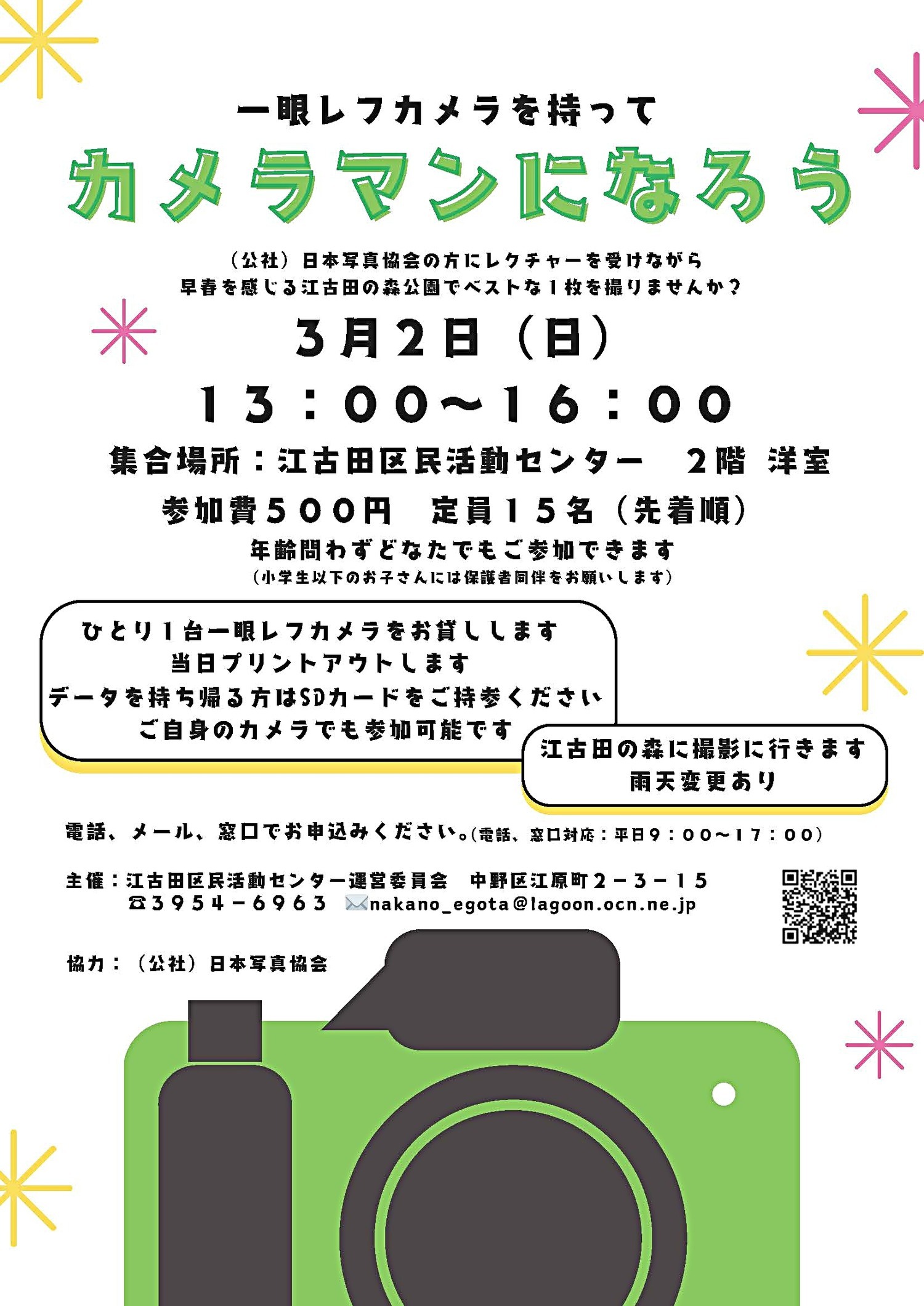 ★貸出用の一眼レフカメラがありますので、カメラをお持ちにならなくても参加できます。