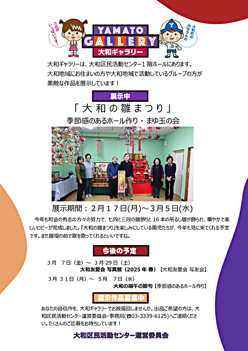 大和ギャラリーは、大和区民活動センター1階ホールにあります。