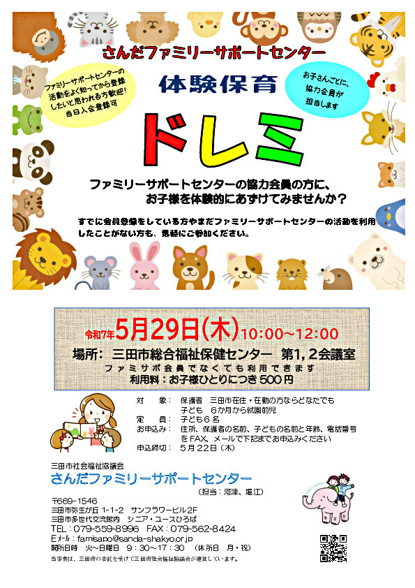 さんだファミリ―サポートセンターが「体験保育ドレミ」を開催します♪