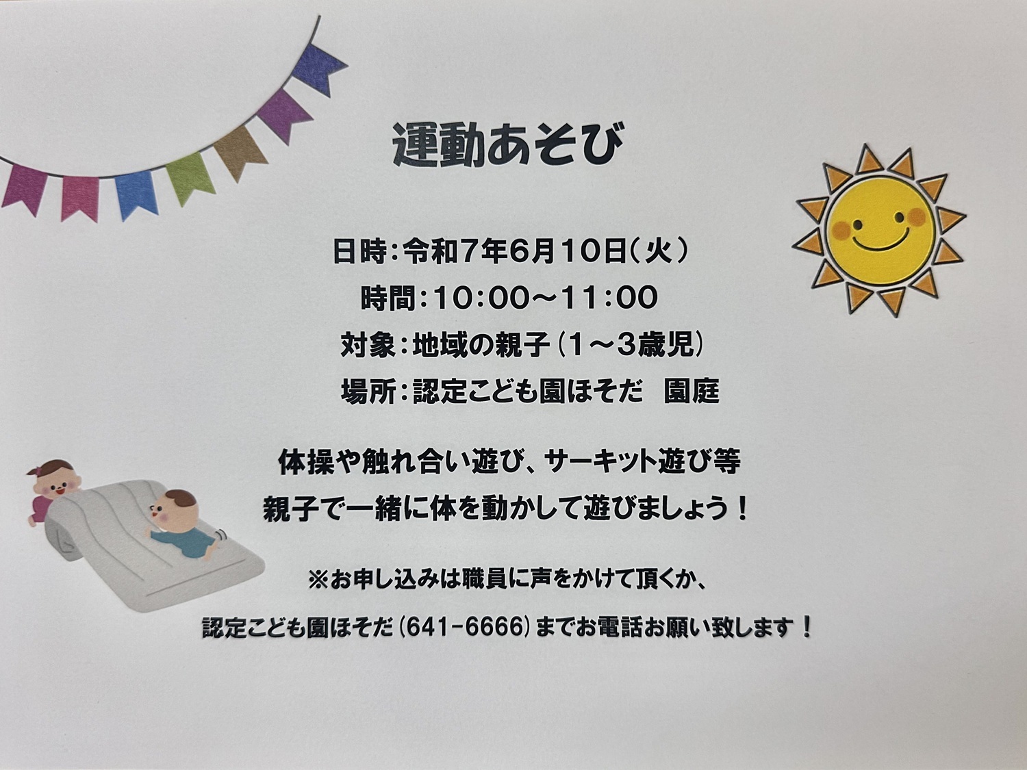 体操や触れ合い遊び、サーキット等親子で一緒に体を動かして遊びましょう!