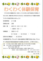 2~3歳のお子様対象にクラスの中に保護者の方と一緒に入っていただき、一緒に遊んだり給食を体験しませんか?アレルギーがあるお子様は、給食前まで一緒に遊びましょう!!