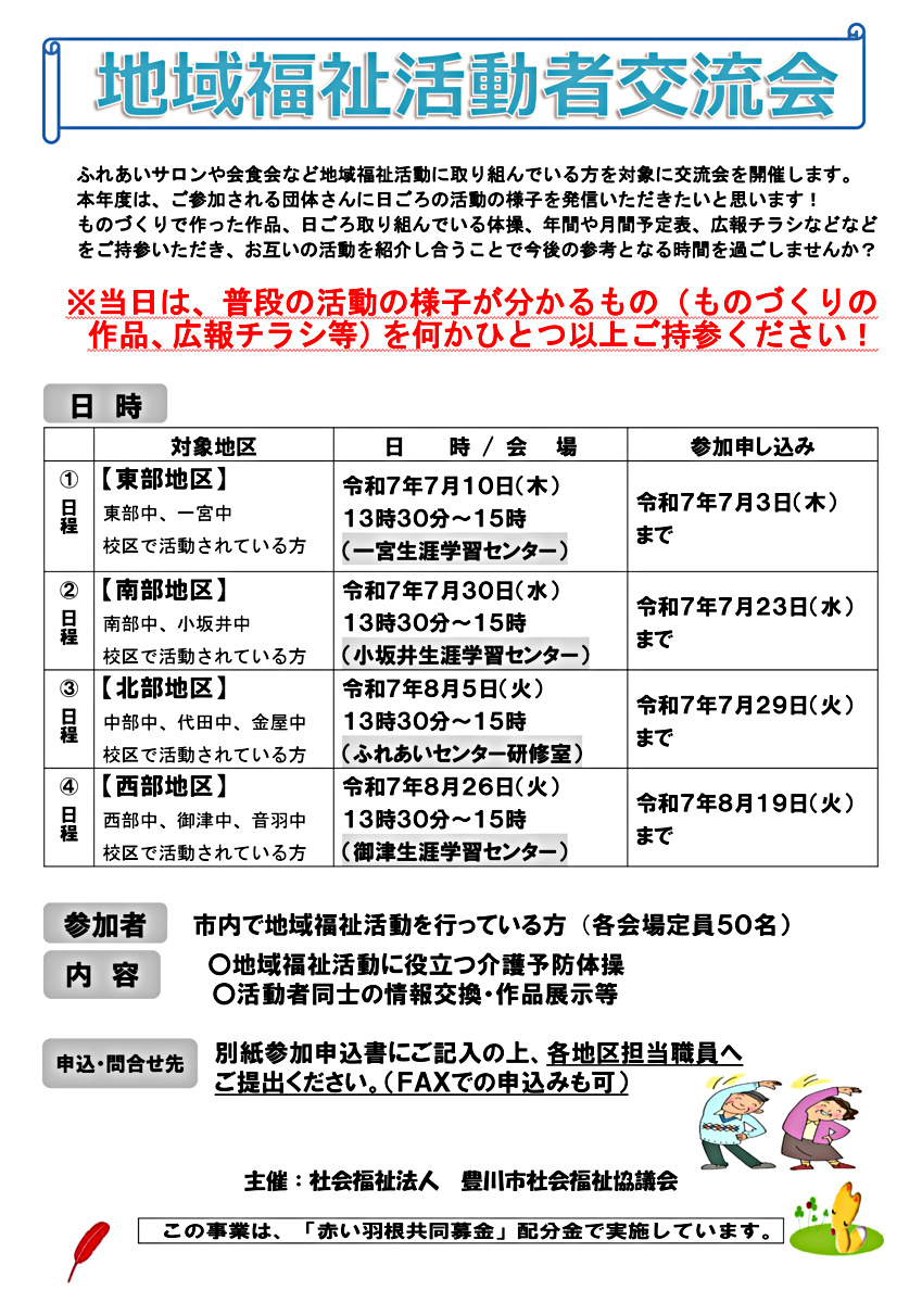 地域福祉活動に取り組んでいる方を対象に交流会を開催します。